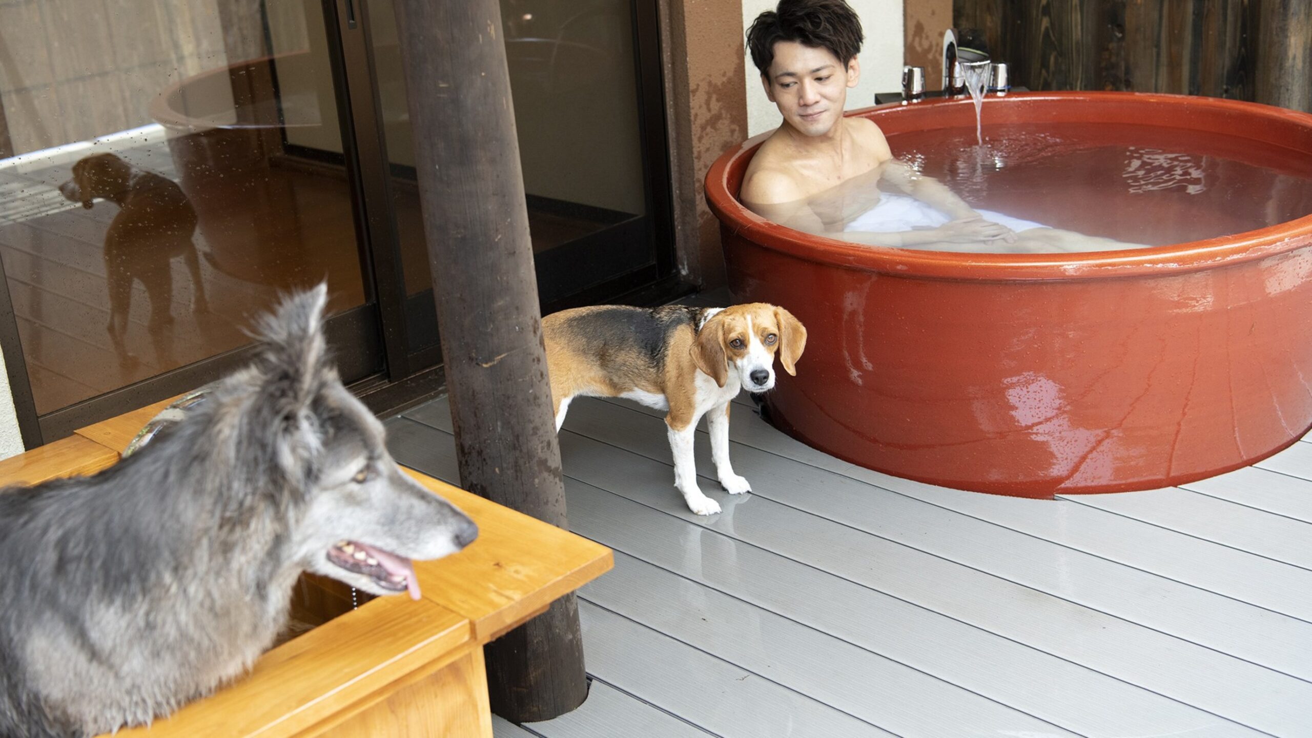 「温泉に入りたーいワン!」